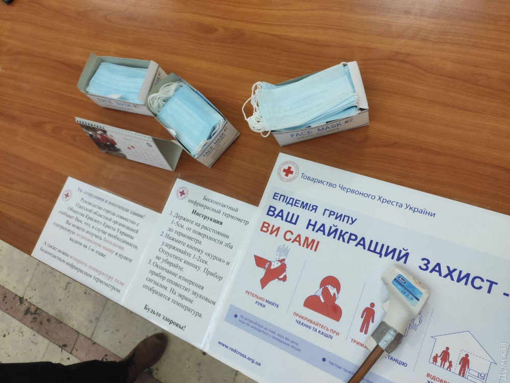 Сегодня в фойе мэрии организовали пункт по раздаче масок посетителям. Кроме того, там предлагают измерить температуру тела при помощи бесконтактного термометра.