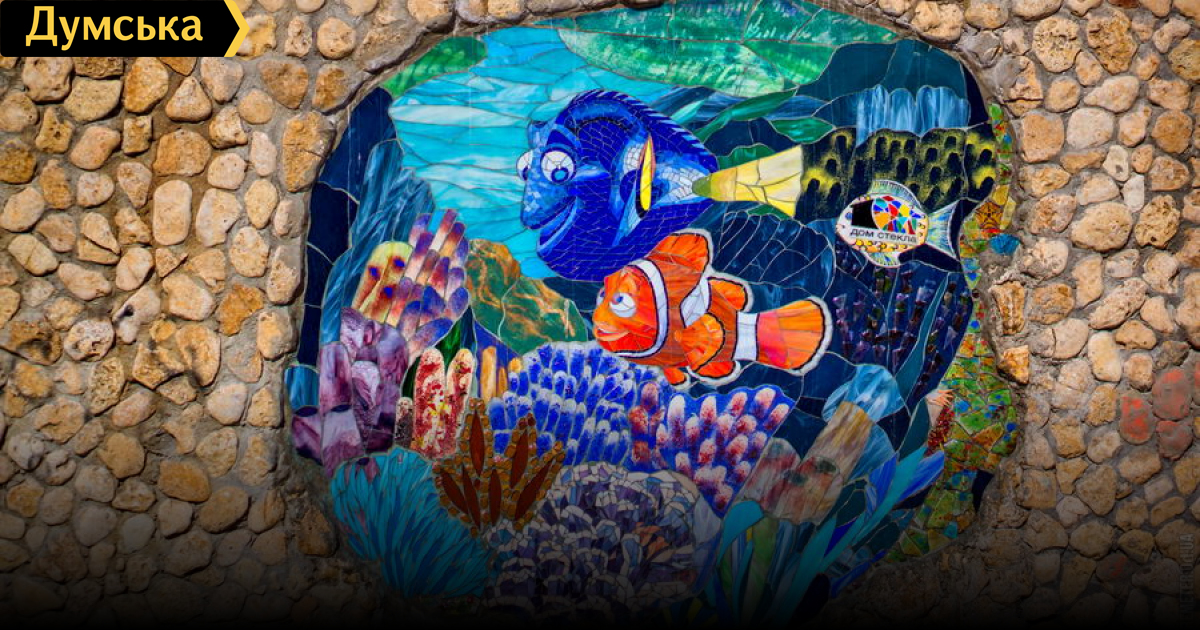 Панно создавали три недели и два дня. Интересно, что складывать стеклышки профессионалам помогали и обычные одесситы — в рамках первого стрит-арт фестиваля, а сюжет мультфильма «Немо», говорят авторы, выбран из любви к детям.
