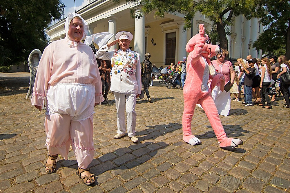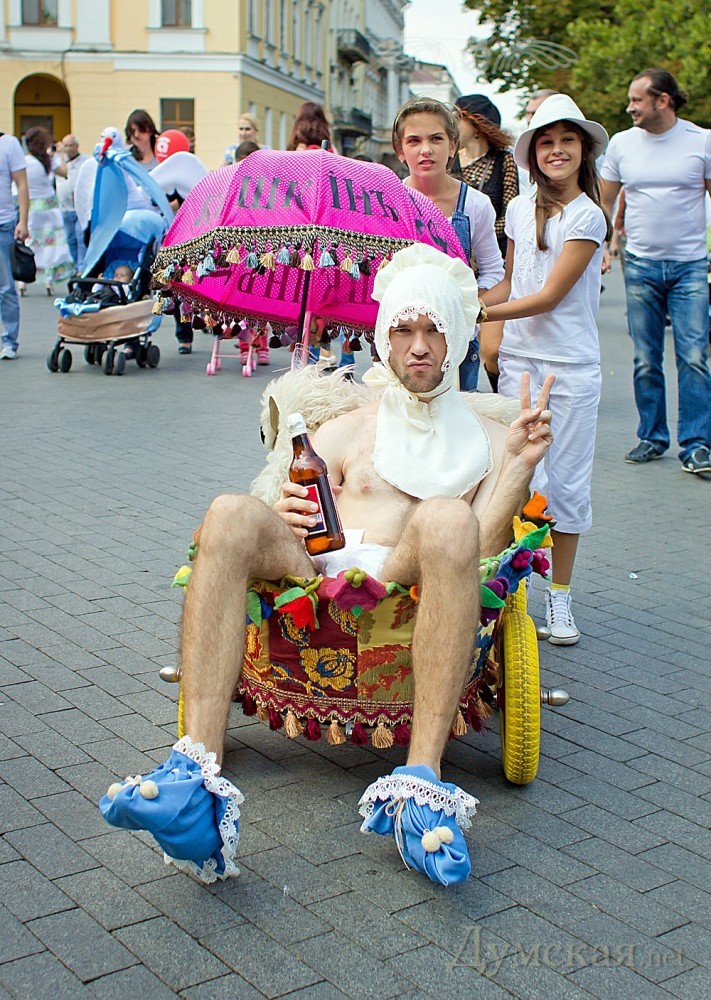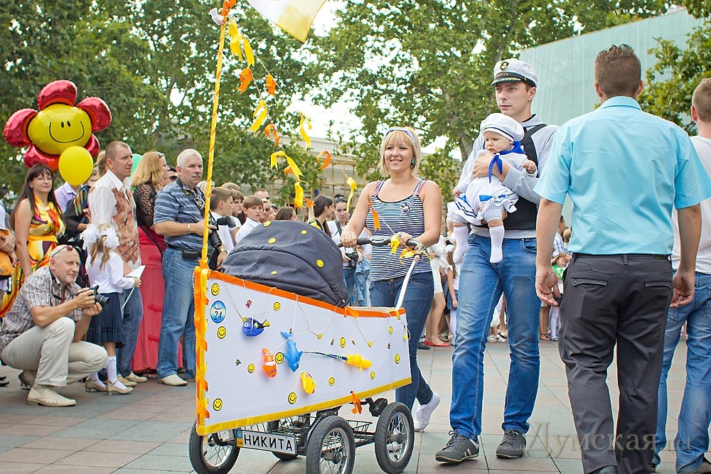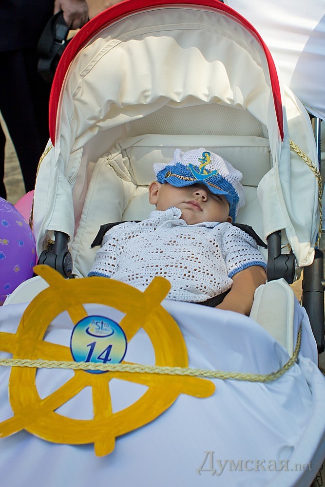 Парад детских колясок: победили маленькие дьяволицы, а зрителей развлекал голый мужик в чепчикеПарад колясок «Будущее Одессы» прошел 1 сентября на Приморском бульваре Одессы. В этом году в параде приняла участие 51 команда родителей и их чад, необычно украсивших свои коляски. По традиции парад стартовал от Воронцовского Дворца, где компетентное жюри, в составе которого были актриса Диана Малая, директор дворца детского и юношеского творчества Лариса Стрельцова и другие известные горожане, оценило оригинальность костюмов и украшение колясок. Кроме простых одесситов, свое видение детских колясок представили и некоторые одесские торговые компании (они не принимали участие в общем зачете), почетное консульство Словении и настоящая индийская семья. Одесситы и гости города, которым посчастливилось оказаться во время парада на Приморском бульваре, смогли также полюбоваться ретро-автомобилями, каретами, выступлениями одесских мажореток и детских творческих коллективов. Награждение наиболее креативных одесситов состоялось у здания мэрии. Приз за первое место (автокресло) получили две прекрасные одесситки в образе дьяволиц. Второе место и столик для кормления досталось не менее оригинальному наряду – семейству самых настоящих дикарей. По словам «дикарки» Анастасии Куракиной, обгладывавшей кость доисторического животного во время всего парада, идея такого образа была навеяна именем сына – Лев. А вот на украшение коляски шкурами «забитых мамонтов» ушло всего два часа, благо все необходимое оказалось под рукой. Третьими была выбрана полигамная чета моряков, состоящая из двух отцов, мамы и маленького капитана Даниила. Им достались ходунки. Наиболее эпатажным среди колясок, украшенных одесскими торговыми компаниями, оказалось передвижное средство «Кошкиного дома». Парень, изображавший маленького мальчика, весь парад подкреплялся пивом из соски и получил утешительный приз вместе с грамотой. Фото — Александр Гиманов СМЕРТЬ РОССИЙСКИМ ОККУПАНТАМ! Заметили ошибку? Выделяйте слова с ошибкой и нажимайте control-enter |