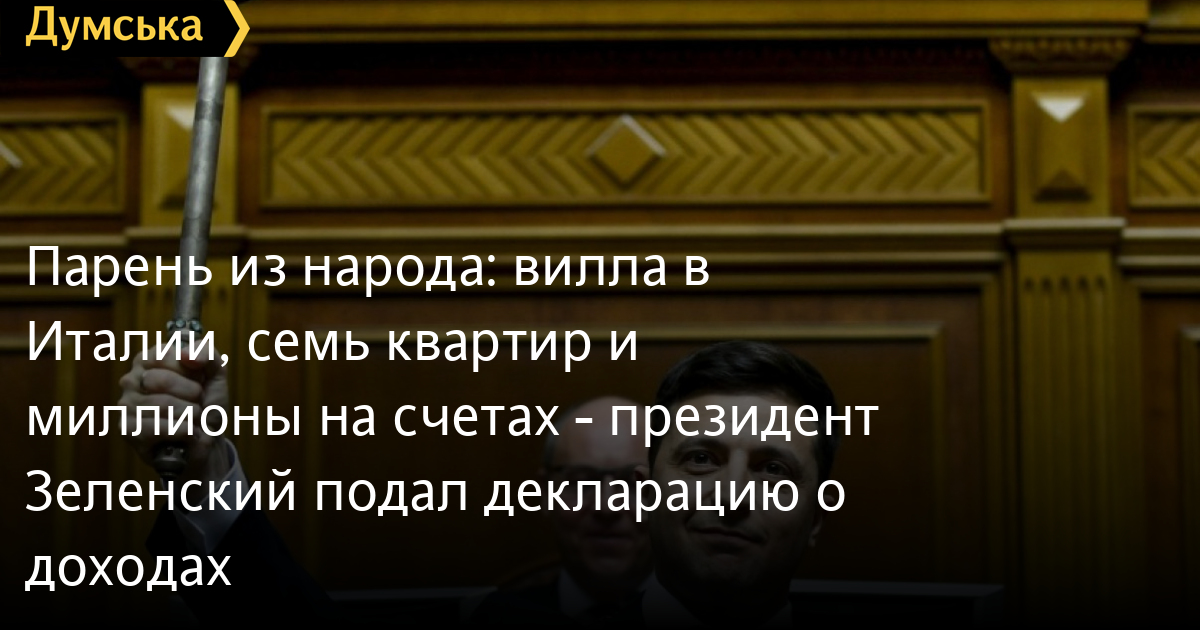На счетах и в наличной форме у президента находится в разной валюте сумма эквивалентная более 20 миллионов гривен. А также в 2018 году Зеленский получил доход на общую сумму почти 10 миллионов гривен. Это — зарплата, доход от предпринимательской деятельности и аренды, проценты, роялти и страховые выплаты. Зарплату Владимир Зеленский получил в компании «Квартал 95« и она составила почти 4,2 миллиона гривен.