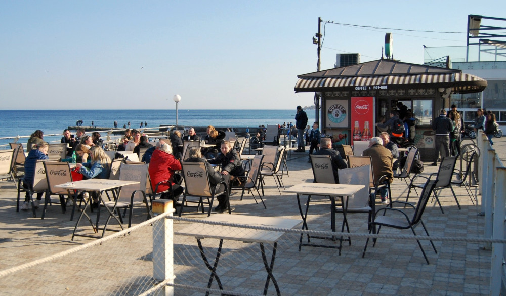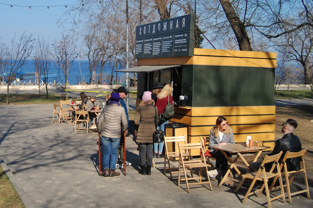 Кофейни, кафешки, торговые точки в парке и на побережье полны клиентов. У официантов и продавцов работы невпроворот — открылись еще не все, поэтому только успевай обслужить всех жаждущих.