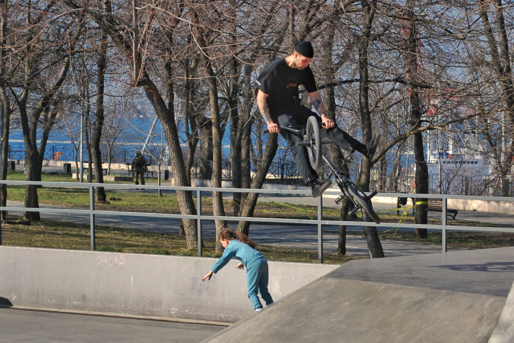 В остальном — сегодняшний день в парке ничем не отличается от тысяч таких же дней в прошлые годы. Вечный огонь на могиле Неизвестному матросу продолжает гореть. Возле памятника — баянист в белой фуражке поет одесские песни о море и о войне. Мамы с колясками степенно прогуливаются по аллеям, дети постарше носятся с правильными детскими криками. Роллердром полон любителей активного отдыха. Под классические рок-хиты велосипедисты крутят свои трюки, дети постарше учат малышей правильно стоять на самокатах и скейтах, а роллеры разных возрастов преодолевают различные препятствия. Пляжи полны любителей солнечных ванн.