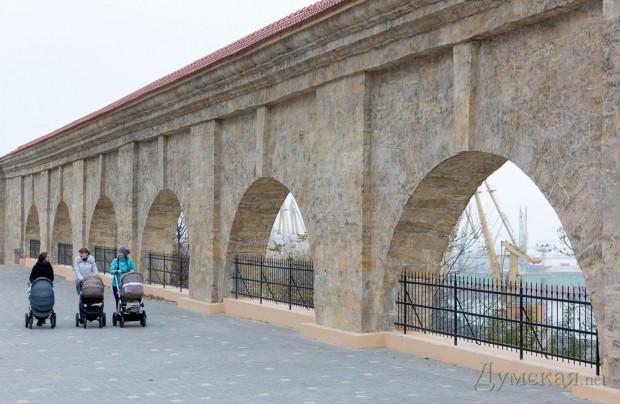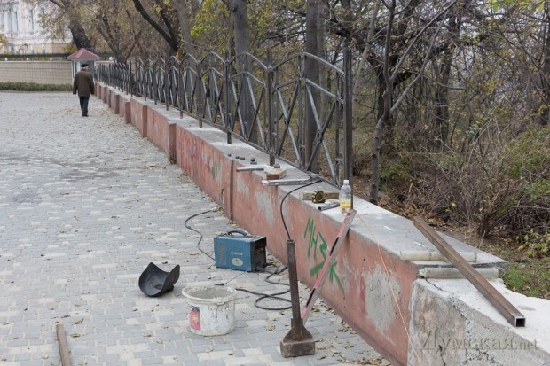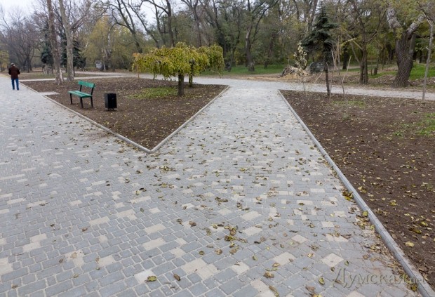 Суворовскую аллею покрыли плиточкой. Грядет масштабная электрификация: ближе к Маразлиевской своего часа ждут опоры уличных фонарей, а вдоль моря уже практически закончили вкапывать контактную сеть. Обновленную Суворовскую постепенно отделяют от небезопасного крутого склона ажурным заборчиком. Бортик в некоторых местах оперативно ремонтируют с помощью бетона. Загадочные рабочие на небольшом экскаваторе зачем-то выдергивают установленные при открытии обновленной Карантинной стены скамейки и мусорные урны. Газоны парка оккупировали работники «Горзелентреста», которые с любовью подготавливают тонкий слой чернозема к зиме.