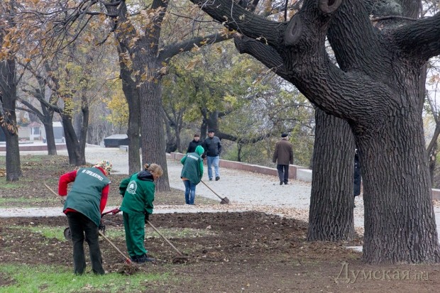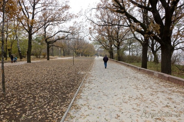 Сам же парк живет своей обычной жизнью: прогуливаются молодые мамы со своими детьми, колесят по дорожкам любители здорового образа жизни, любопытные белки норовят попросить угощения у одесситов, а нагулявшие на зиму подкожный жир коты прячутся от осенних холодов в лоток для ливневки. К ногам воина-интернационалиста кто-то возложил букет опавшей ярко-желтой листвы, а памятник Неизвестному матросу украшен букетом гвоздик с ленточками цветов национального флага.