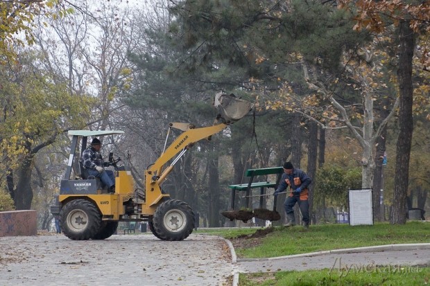 Благоустройство парка Шевченко, несмотря на понемногу ухудшающуюся погоду, продолжается. Корреспондент «Думской» проинспектировал работы.