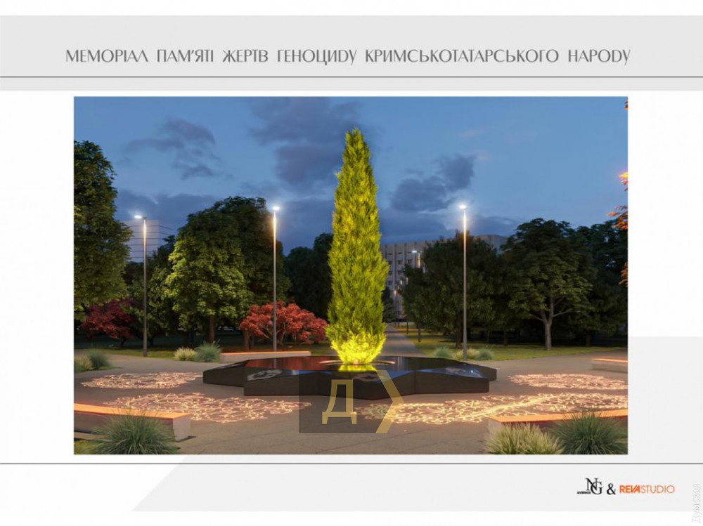 В нем появятся три мемориала: воинам, погибшим в борьбе за независимость Украины; героям Небесной Сотни и жертвам геноцида крымскотатарского народа (профинансирует община). Первый автор предлагает выполнить в виде большой прямоугольной мраморной плиты с именами павших, сквозь которую будут расти деревья; второй — в виде аллеи с плитами поменьше. Запланированный памятник крымским татарам представляет собой восьмиконечную звезду (исламский символ руб аль-хизб) с элементами традиционного крымскотатарского орнамента на каждом луче. В центре должно расти дерево — пирамидальный тополь.