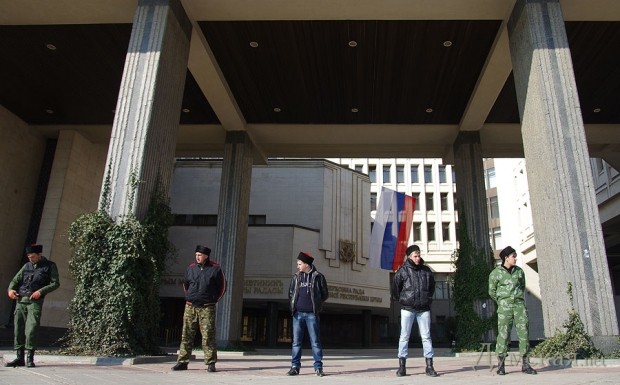 Здание верховного совета Крыма лишилось украинской символики.