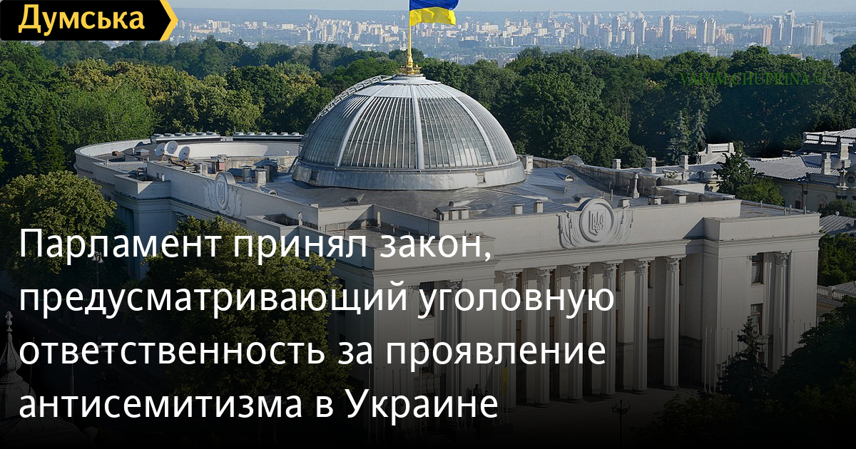 Как сообщает пресс-служба парламента, документом предусматривается приведение в соответствие положений Уголовного кодекса с положениями законопроекта «О предотвращении и противодействии антисемитизма в Украине». Его поддержали 295 депутатов.