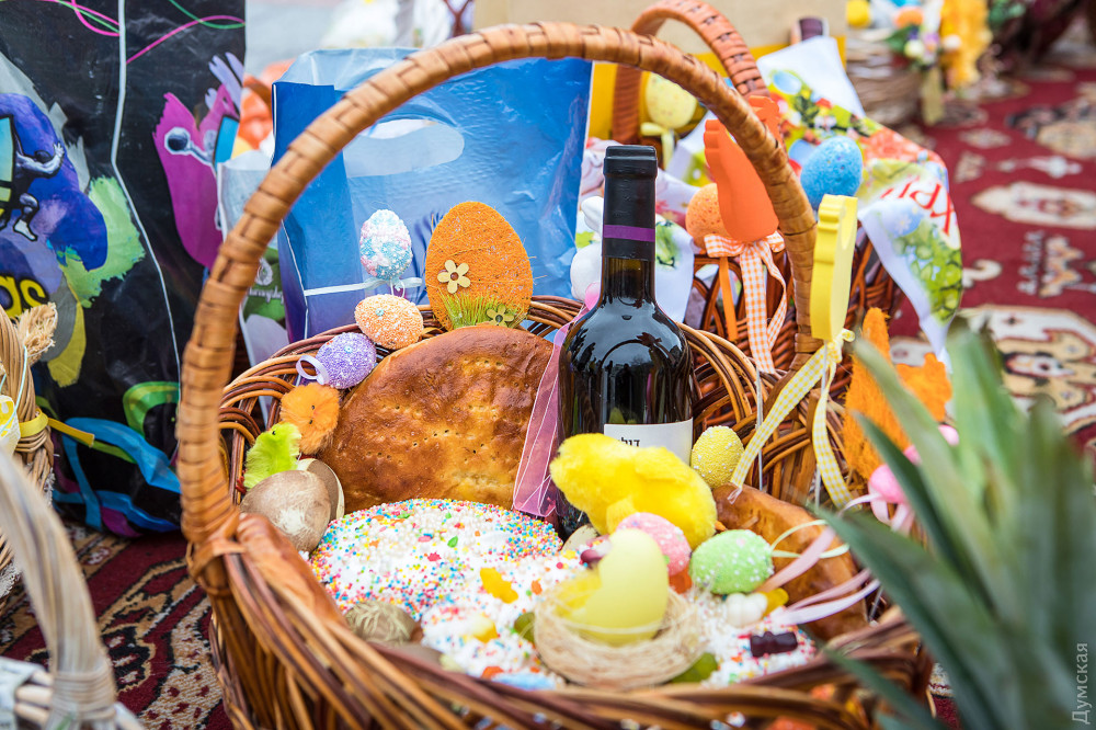Освящение пасхальных корзинок в этом году прошло в храме. Интересно, что кроме традиционных пасок и крашеных яиц, католики обязательно должны освятить колбасу – как символ жертвенного агнца — и соль, символ очищения.