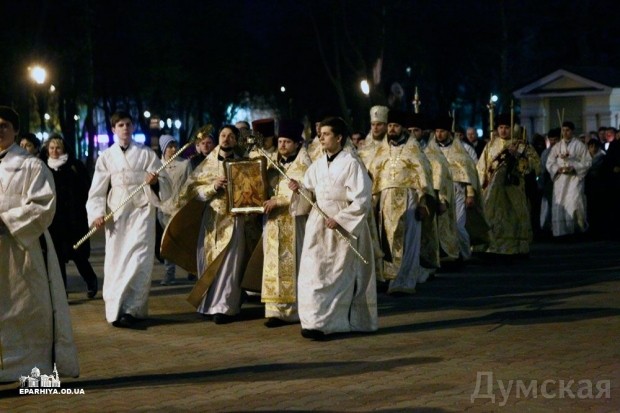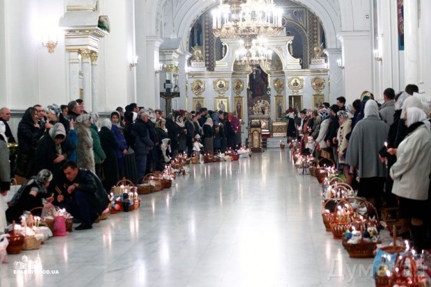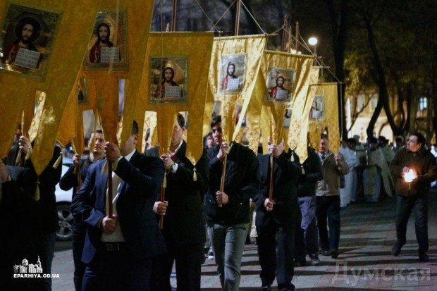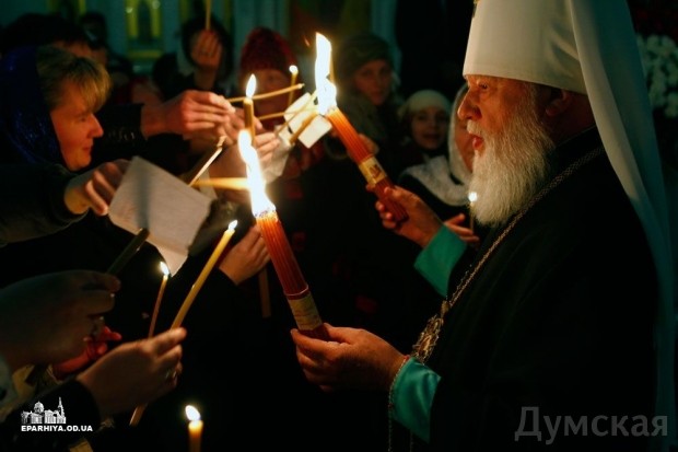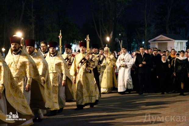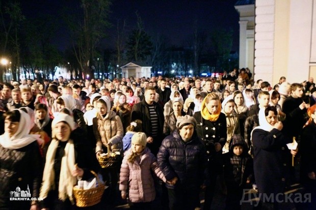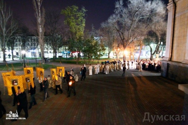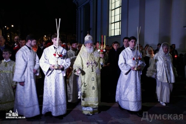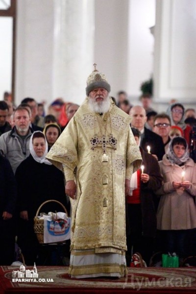 Главное пасхальное богослужение города и области прошло ночью в Спасо-Преображенском кафедральном соборе. Руководил им митрополит Одесский и Измаильский УПЦ МП Агафангел.