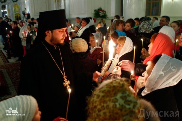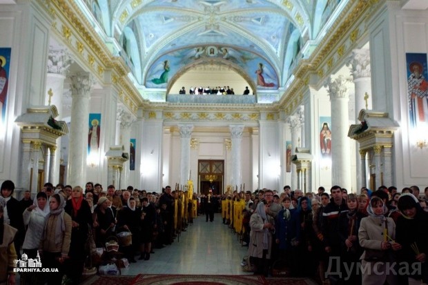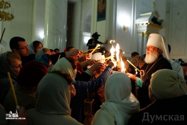 Как сообщила пресс-служба епархии, перед началом богослужения в собор доставили Благодатный огонь из храма Гроба Господня в Иерусалиме, куда по благословению владыки была направлена делегация во главе с ректором Одесской Духоной семинарии архимандритом Серафимом.