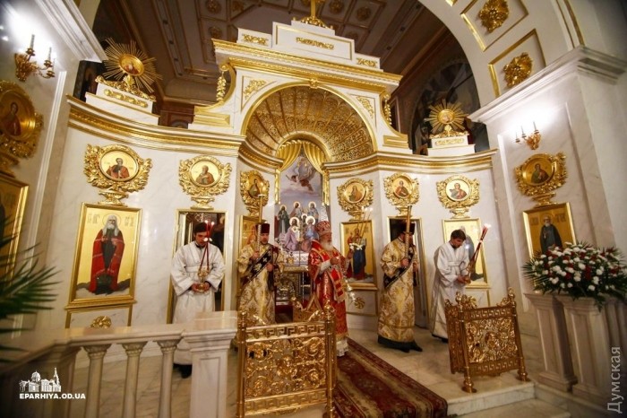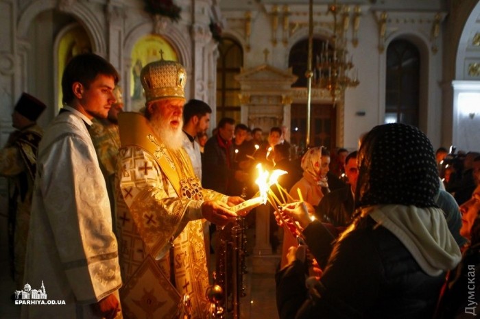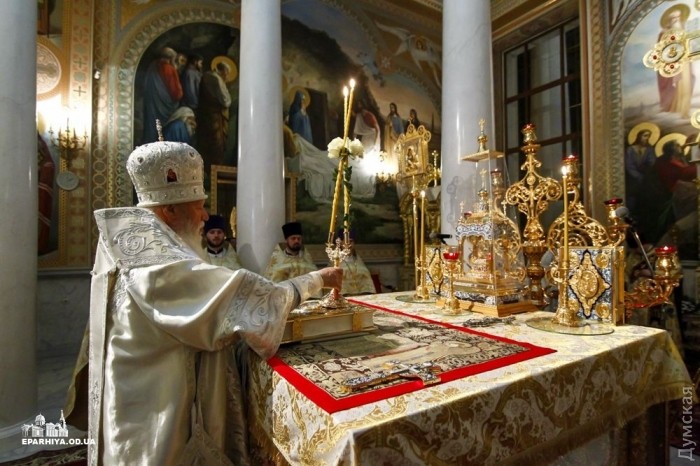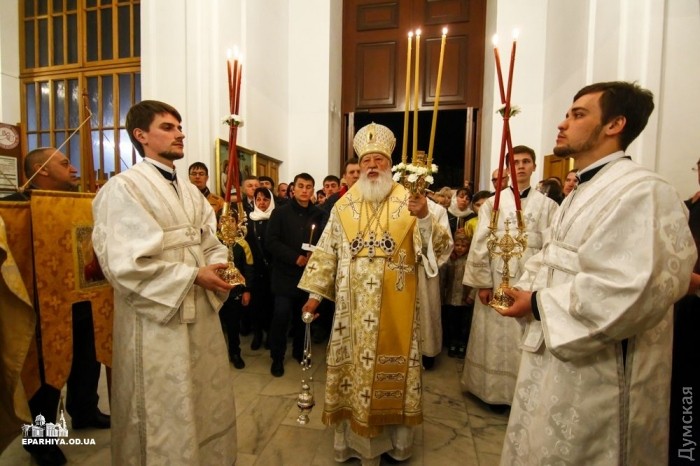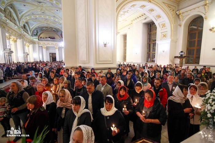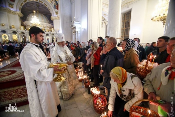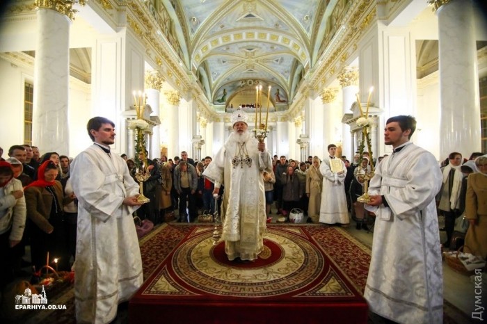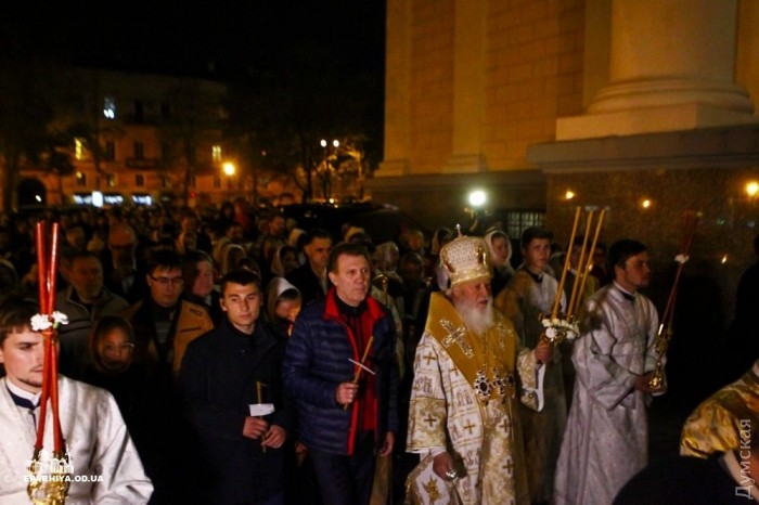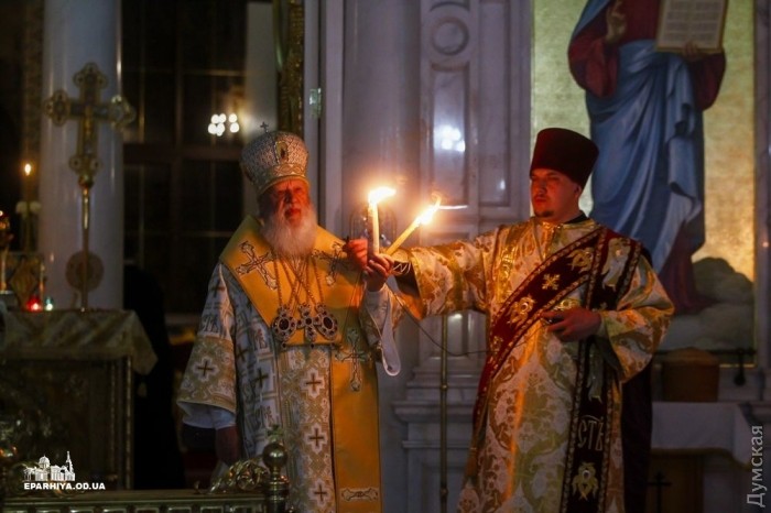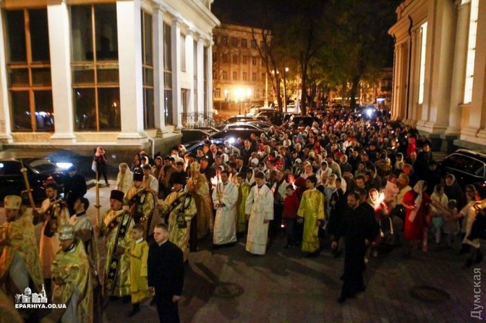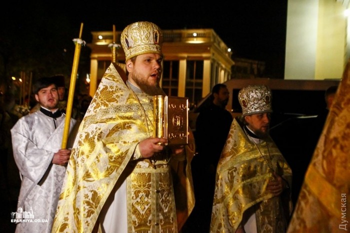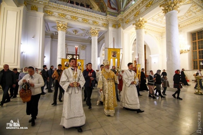 Митрополит Одесский и Измаильский Агафангел (УПЦ Московского патриархата) совершил пасхальный крестный ход и праздничную литургию в Спасо-Преображенском кафедральном соборе Одессы.
