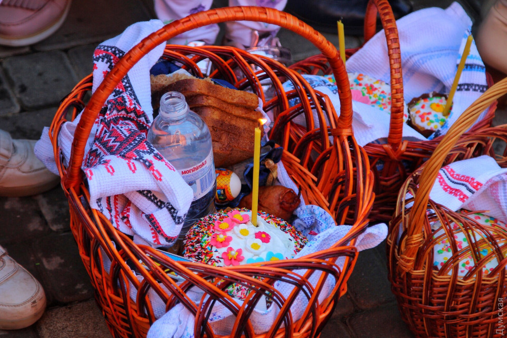 Поток прихожан, которые желают освятить пасхальные корзины в православном храме Святого великомученика Георгия Победоносца, что на 411-й батарее, не иссякает с ночи.