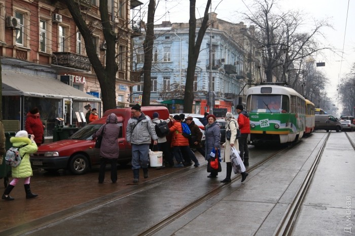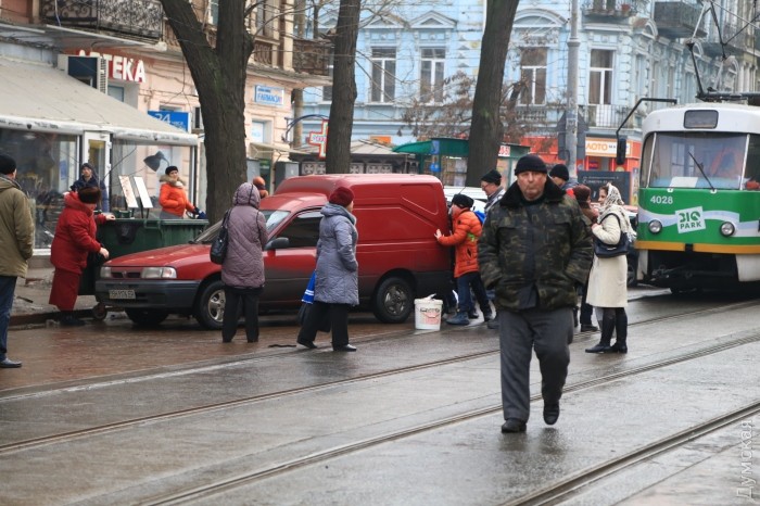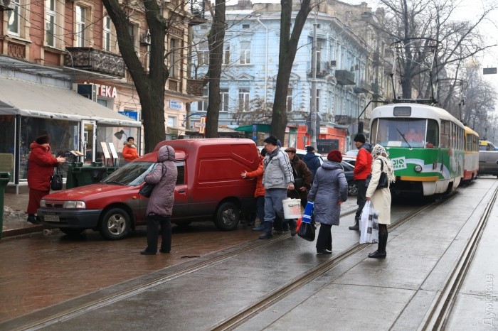 Сегодня днем неправильно припаркованный автомобиль в очередной раз заблокировал движение трамваев на Тираспольской площади Одессы.