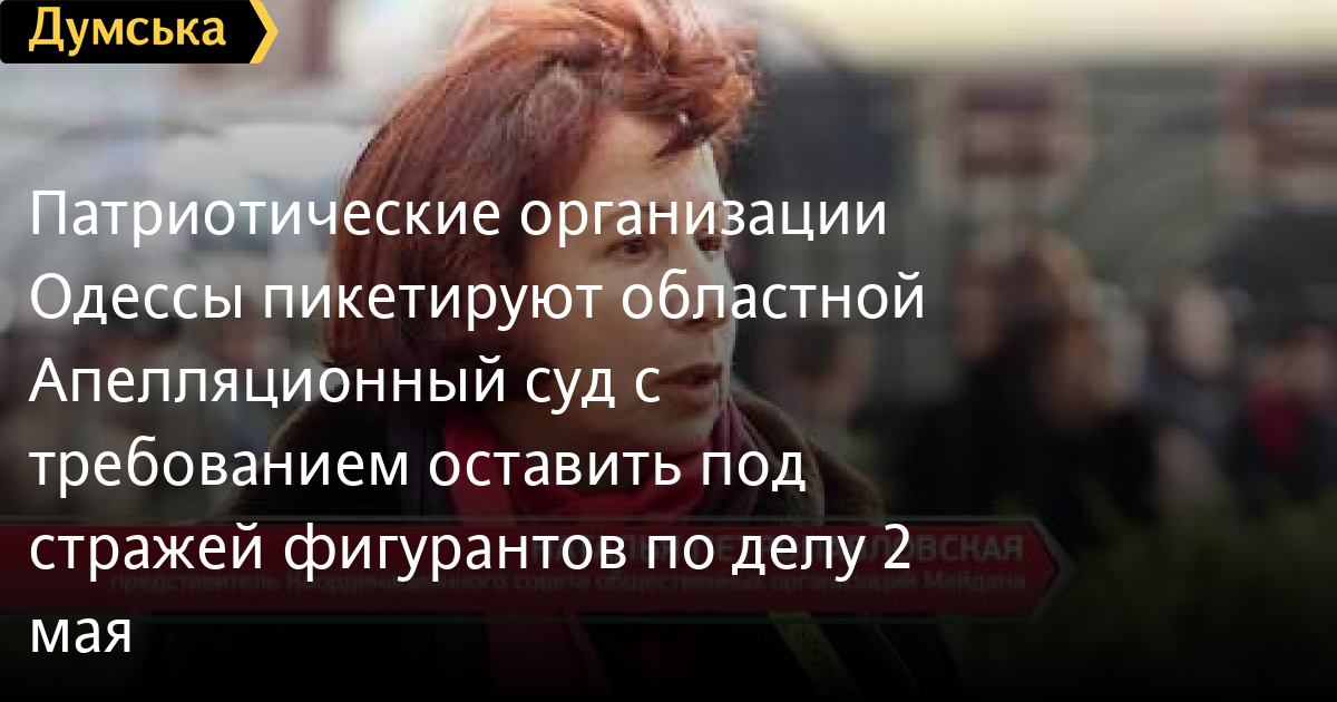 Пикет под стенами областного Апелляционного суда. Представители различных патриотических организаций выступили с требованием оставить под стражей фигурантов по делу 2 мая. Речь идет о пяти представителях так называемого «Антимайдана». Активисты убеждены – решение районного суда было незаконным, и вторая инстанция обязана его отменить. Больше расскажет Алла Есина.
