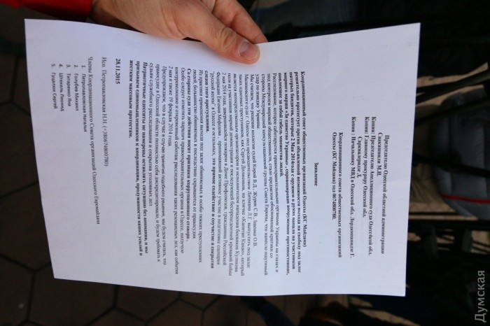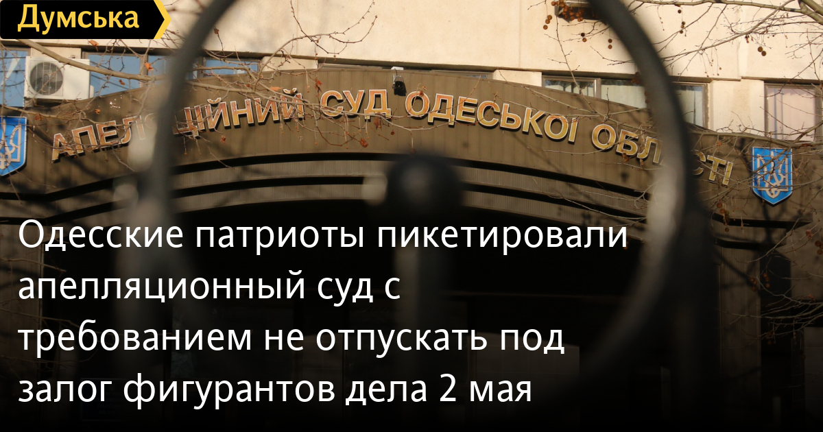 Одесские патриоты пикетировали апелляционный суд с требованием не отпускать под залог фигурантов дела 2 маяПатриотические организации Одессы пикетировали областной апелляционный суд, требуя отменить определение Малиновского райсуда города, который дал возможность освободиться из-под стражи под залог фигурантам дела 2 мая из числа участников Антимайдана, в том числе предполагаемому организатору массовых беспорядков Сергею Долженкову. По мнению патриотов, райсуд принял незаконное решение, и вторая инстанция должна его отменить. С участниками пикета встретился председатель апелляционного суда Григорий Колесников. Он заявил, что Уголовный процессуальный кодекс не предусматривает возможность апелляционного обжалования определения о мере пресечения, вынесенного в ходе судебного процесса. Единственный вариант — если прокуратура усмотрит в действиях судей процессуальные нарушения. Собственно, это и произошло. Как пояснил активистам представитель прокуратуры, ведомство считает, что райсуд допустил ошибку — назначил новую меру пресечения, не отменив старую. В связи с этим определение было обжаловано. Получив ответы на свои вопросы, патриоты поехали в Малиновский суд - общаться со служителями Фемиды, которые дали шанс на освобождение из-под стражи Долженкову и его соратникам. Общественная «Группа 2 мая», которая занимается неофициальным расследованием одесской трагедии, напоминает, кого именно согласился выпустить под денежный залог суд. Сергей Долженков по кличке «Капитан Какао» — именно тот человек, под руководством которого боевики «Одесской дружины» напали на марш футбольных болельщиков, что послужило началом кровавых столкновений на Греческой площади и, в конечном итоге вылилось в самое жуткое побоище за последние 70 лет одесской истории. Что бы он ни говорил в свою защиту тогда и сейчас, видео и фотоматериалы свидетельствуют об умысле на столкновение. А присутствие во время боев в переулке Вице-адмирала Жукова в рядах возглавляемого Долженковым отряда «Одесской дружины» вооруженного автоматическим оружием боевика «Антимайдана» Виталия Будько опровергает любые вымыслы о мирном характере марша сторонников федерализации Украины. СМЕРТЬ РОСІЙСЬКИМ ОКУПАНТАМ! Помітили помилку? Виділяйте слова з помилкою та натискайте control-enter