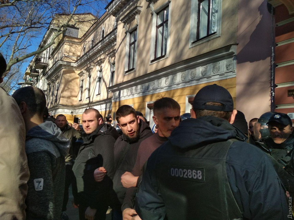 ОБНОВЛЕНО В 15:33. Со стороны патриотов в событиях участвуют активисты «Дії», «Автомайдана» Евгения Резвушкина и «Нацкорпуса», ОПЗЖ защищают сотрудники охранной фирмы и примерно сотня «спортсменов», приехавших вчера в город по Киевской трассе.