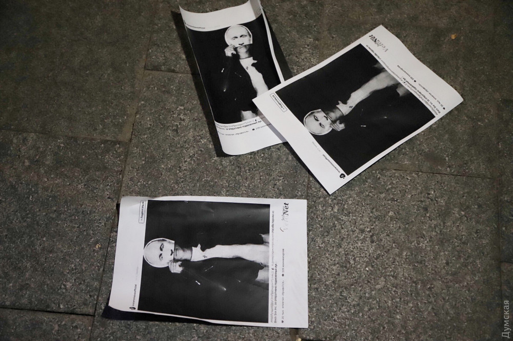 Патриоты сожгли российский флаг и расклеили антипутинские листовки.