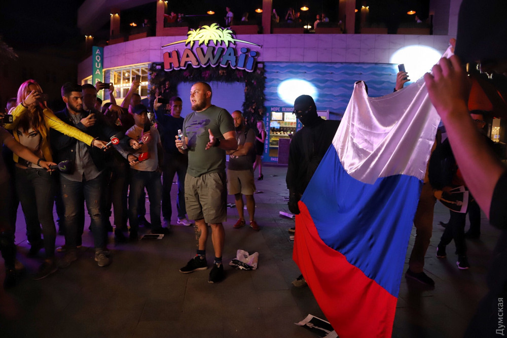 Группа патриотов митингует возле аркадиевского ночного клуба «Ибица», на открытии которого все-таки должна выступить российская певица Елена Темникова, называющая себя «фанаткой Путина» и ранее незаконно бывавшая в оккупированном Крыму.