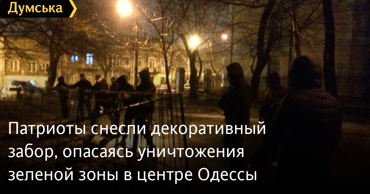Патриоты снесли декоративный забор, опасаясь уничтожения зеленой зоны в центре Одессы