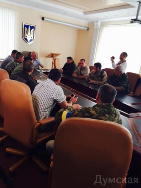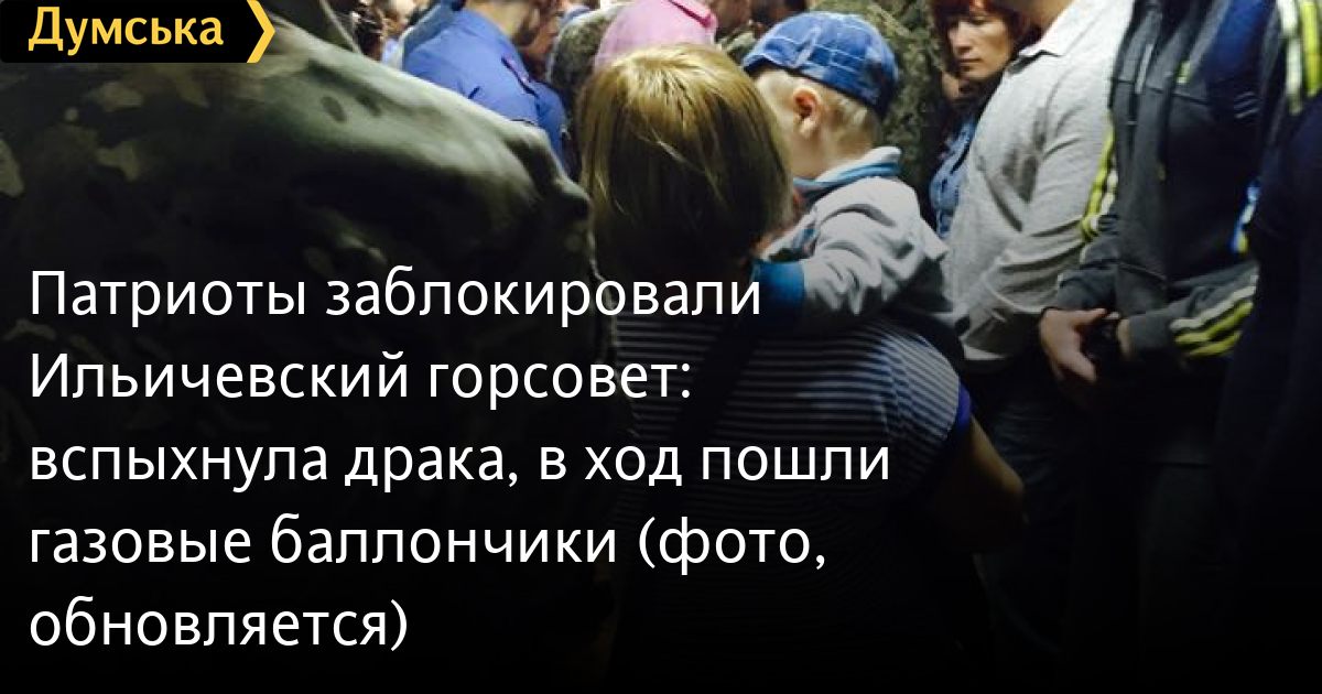 Беспорядки в Ильичевске. Представители патриотических организаций и участники войны на востоке страны заблокировали городской совет, где проходит последняя сессия этого созыва. Им попытались помешать сторонники мэра Валерия Хмельнюка.