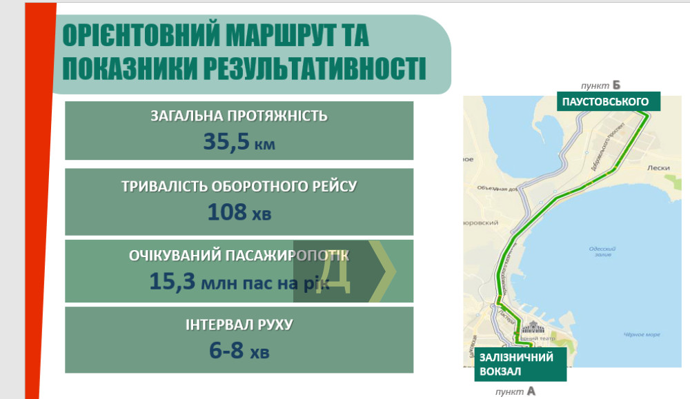 Пока что рабочий вариант маршрута звучит так: улица Паустовского – железнодорожный вокзал. Его длина – 35 километров, продолжительность оборотного рейса – 108 минут. Ожидается, что интервал движения составит шесть-восемь минут.