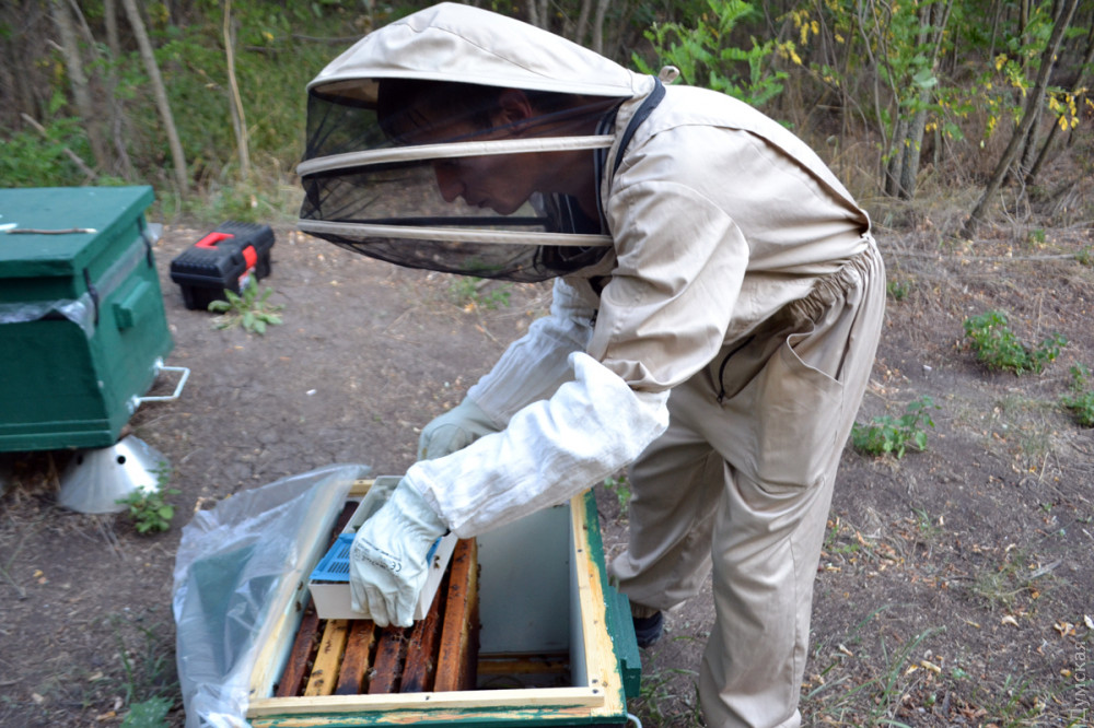 Самостоятельно путь к пасеке не найти: ульи, или, как ласково их называют пасечники, «улики» (с ударением на первый слог), спрятаны в низкорослой посадке рядом с полем подсолнухов. Сезон сбора меда уже давно окончен, поскольку прекратилось цветение всего, с чего можно собрать «взяток» — пыльцу и нектар. Именно из нектара пчела вырабатывает мед. Который, в сущности, является продуктом пищеварения этих симпатичных летающих насекомых. Помимо производства вкусного меда, пчелы выполняют еще одну важную функцию – опыляют растения.