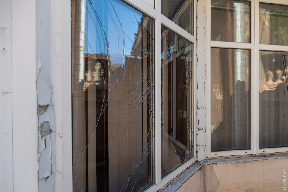 «Судячи з усього, неподалік було збиття й осколки засипали околиці будівлі, — розповів ректор. — Вибуховою хвилею вибило вікна по фасаду будівлі, загалом постраждало або повністю вибито близько 60% вікон корпусу. Над головними сходами обвалилася стеля, ще одна частина тріснула і її доведеться прибирати, бо вона все одно завалиться. Слава богу, обійшлося без жертв і значних пошкоджень».