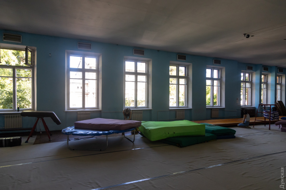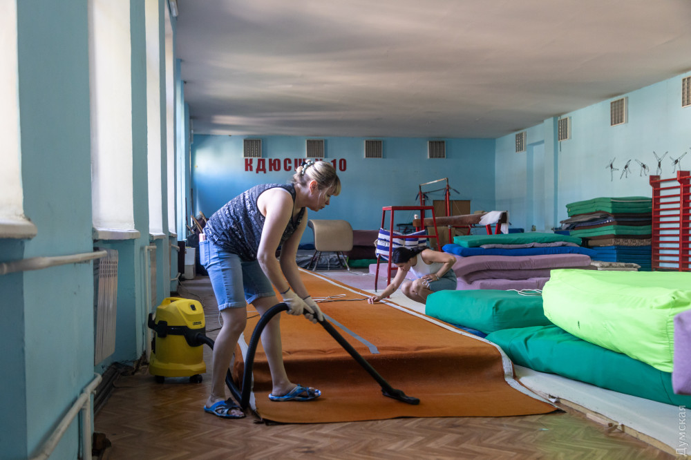 Співробітники університету закрили розбиті вікна плівкою — Червоний хрест передав кілька сотень квадратних метрів. Тренери розташованої на другому поверсі дитячо-юнацької спортивної школи з гімнастики ретельно прибирають мати — від вибуху тут вибило абсолютно все скло.