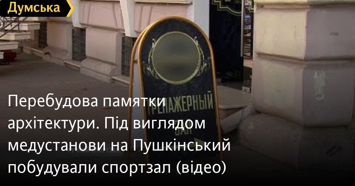 Перебудова пам’ятки архітектури. Під виглядом медустанови на Пушкінський побудували спортзал (відео)Перебудова пам’ятки архітектури на Пушкінській, 27. Місцеві жителі стверджують – на верхньому поверсі будівлі під виглядом медустанови побудували спортзал. Приватний підприємець нібито зніс стіни у приміщенні. Одесити наголошують – без дозволу обласного ДАБІ. Подбробиці — в сюжеті «ДумськоїТВ». СМЕРТЬ РОСІЙСЬКИМ ОКУПАНТАМ! Помітили помилку? Виділяйте слова з помилкою та натискайте control-enter |