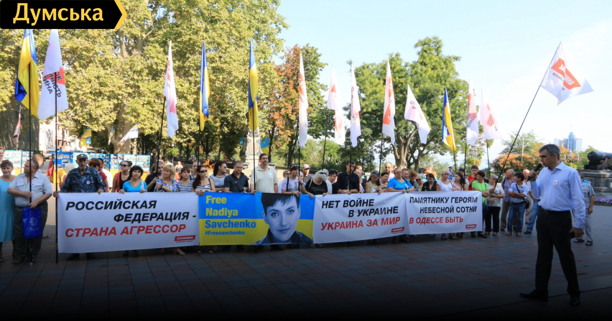 На Думской площади прошел небольшой митинг за Савченко и против застройки Французского бульвара