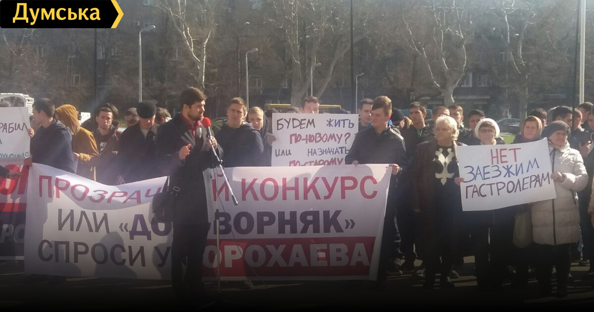 Сегодня накануне сессии областного совета у стен Одесской облгосадминистрации состоялось сразу два митинга. Часть площади перед ОГА заняли учащиеся и сотрудники профтехучилищ области, которые требуют, чтобы их учреждения финансировали из областного бюджета и чтобы действовал принцип регионального заказа, когда специальности и количество специалистов определяли не в Минобразования, а на местах. Собственно, в планах ОГА это и значится. Как сообщила накануне и.о. вице-губернатора Марина Зинченко, в настоящее время идет процесс изменения системы. «Например, в Балте, Кодыме и Саврани местные ПТУ уже вышли с инициативой перейти на систему регионального заказа, — отметила чиновница. – Потому что люди на месте лучше знают, какие им нужны специалисты. Вот, к примеру, в Белгороде-Днестровском готовят строителей, а с учетом наличия курортных Сергеевки и Затоки там больше всего не хватает поваров и кулинаров». Другой митинг, состоявший в основном из спортивного вида молодых ребят и небольшого числа пенсионеров, был направлен против некогда грозного вице-мэра Одессы Анатолия Ворохаева (он работал при мэре Эдуарде Гурвице). Ворохаева, отметим, прочат на должность главы Беляевской РГА. По мнению участников акции, конкурс, который пока еще даже не объявлен, будет сфальсифицирован в пользу Ворохаева. На плакатах его нарекли «заезжим гастролером». Правда, сами манифестанты оказались не готовы ответить, кто же такой Ворохаев, что бросает тень на прозрачность самой акции. Был также и третий митинг, в котором обманутые инвесторы ЖК «Золотой берег» требовали обратить внимание на их проблему и помочь достроить их дома. СМЕРТЬ РОСІЙСЬКИМ ОКУПАНТАМ! Помітили помилку? Виділяйте слова з помилкою та натискайте control-enter