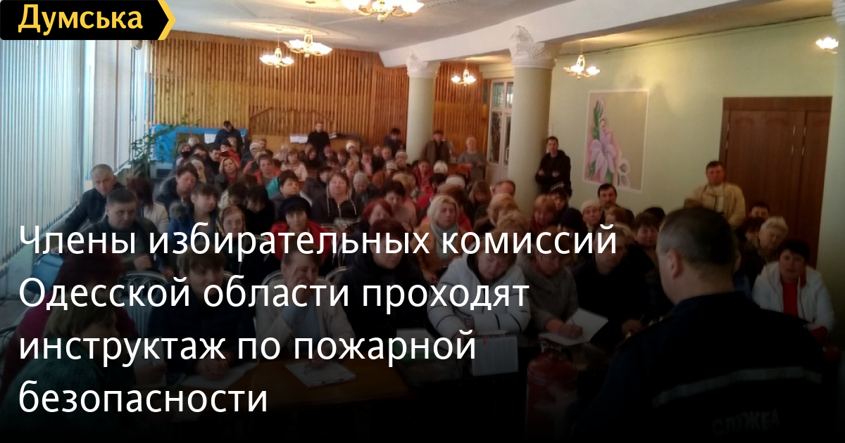 Члены избирательных комиссий Одесской области проходят инструктаж по пожарной безопасностиВ преддверии президентских выборов одесские спасатели обучают членов избирательных комиссий правилам пожарной безопасности. В частности, такие занятия проведены в Подольском и Беляевском районах. «Помещения избирательных участков должны быть обеспечены огнетушителями и емкостью с водой, отметками эвакуационных выходов и порядка вызова службы спасения «101». Необходимо организовать дежурство ответственных лиц и добровольных пожарных команд», — напомнили в пресс-службе облГСЧС. Во время выборов все пожарно-спасательные подразделения переводятся в режим повышенной оперативной готовности. СМЕРТЬ РОССИЙСКИМ ОККУПАНТАМ! Заметили ошибку? Выделяйте слова с ошибкой и нажимайте control-enter Новости по этой теме: 19 мая 2021: Депутат от "Батькивщины" поздравила избирателей с Днем пионерии, а после заявила, что это были хакеры 21 апреля 2021: Соцопрос: «Слуга народа» и «Евросолидарность» почти сравнялись в рейтинге партий, а Зеленский минимально обходит Порошенко 9 апреля 2021: Соцопрос: «Слуга народа» и «Евросолидарность» лидируют в рейтинге, у Зеленского 45% недоверия, но его бы снова выбрали президентом 2 апреля 2021: Скандальные выборы на Ивано-Франковщине: на 20 участках пересчитывают голоса, на трех из них признали недействительными результаты |