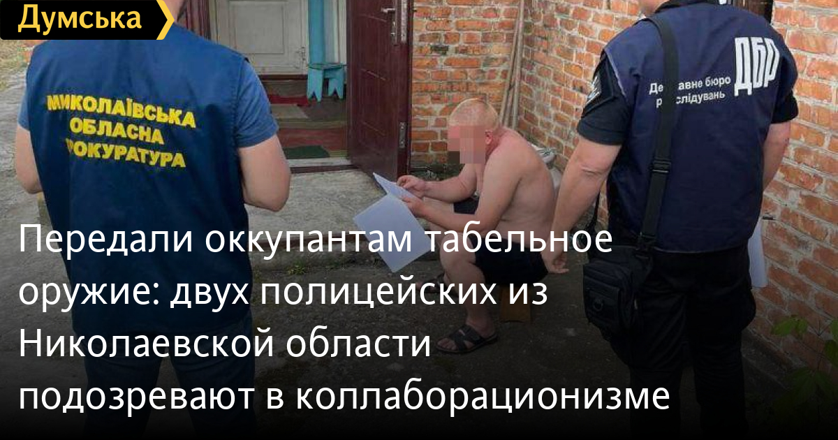 Двум сотрудникам отделения №2 Баштанского райотдела полиции Николаевской области сообщили о подозрении в коллаборационизме (ч. 4 с. 111-1 УК Украины).