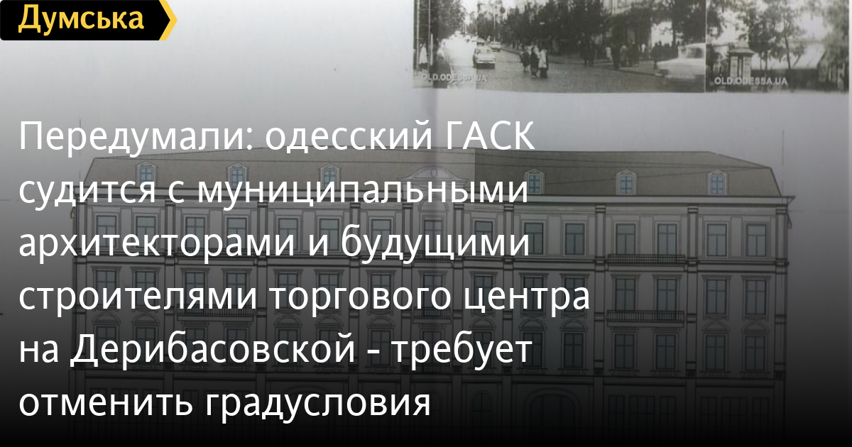Ответчиком выступают коллеги ГАСКа по мэрии — департамент архитектуры и градостроительства, который в феврале 2020 года выдал спорные градусловия. Третьим лицом на стороне ответчика является застройщик, киевская компания «ОДС РЕНТ ГРУП». Она намерена построить на Дерибасовской еще один торговый центр под видом реконструкции строений, которые снесли много лет назад.