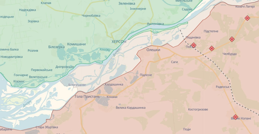 Нагадаємо, що в Херсонській області триває операція українських захисників, яким вдалося форсувати головну річку країни і закріпитися на її лівому березі. За неперевіреними відомостями, Сили оборони сформували два плацдарми біля залізничного та автомобільного Антонівських мостів, які минулого тижня об'єднали в один. Наразі підрозділи морської піхоти контролюють більшу частину села Кринки та ліси навколо. Крім того, перерізали прибережну дорогу Олешки-Нова Каховка (53 км на північний схід від Херсона) щонайменше у двох місцях.