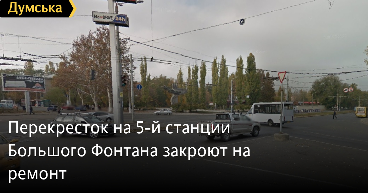 Перекресток 5-й станции Большого Фонтана закроют для автотранспорта в связи с капитальным ремонтом дороги.