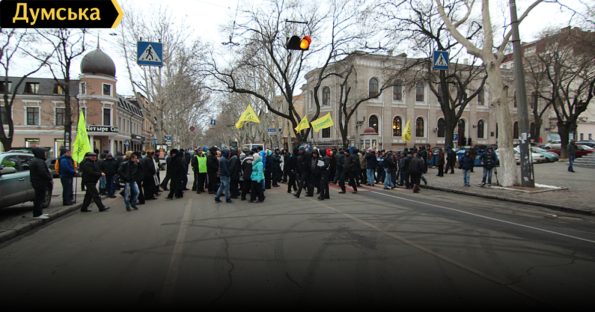Работники одесского авторынка «Куяльник», поддерживающие арестованного председателя кооператива Евгения Хайкина, перекрыли дорогу движение транспорта по улице Ришельевскую.