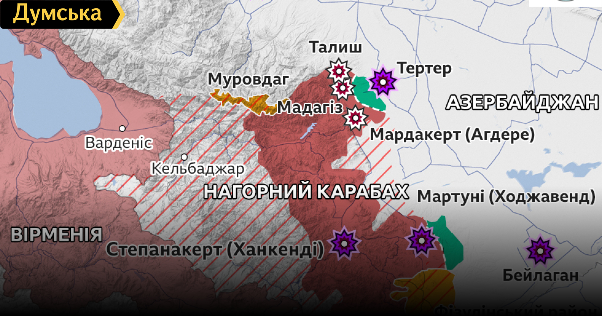 Перемирие между Баку и Ереваном, объявленное ранее в 12:00 10 октября, не продлилось и часа (полдень на Кавказе наступает раньше на час по сравнению с киевским временем).