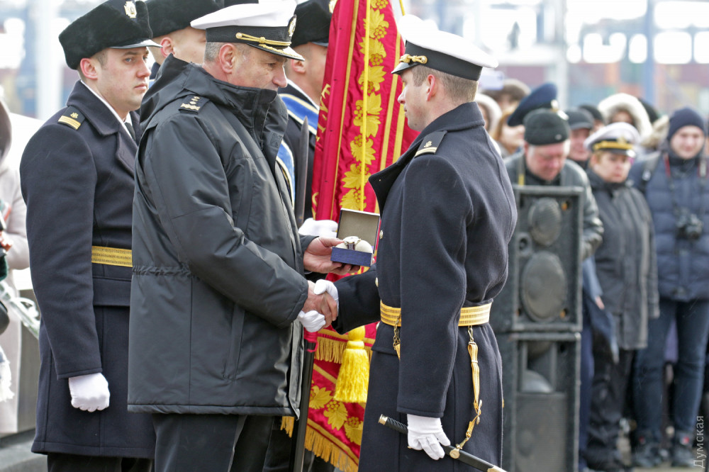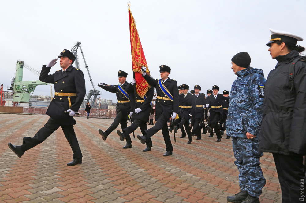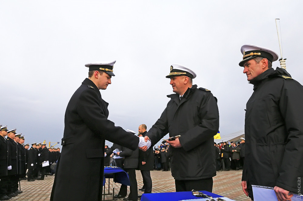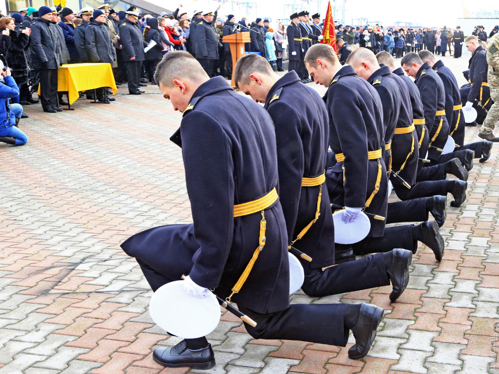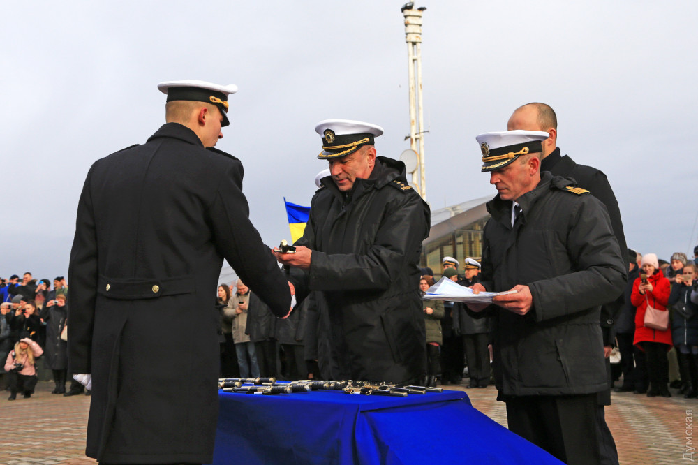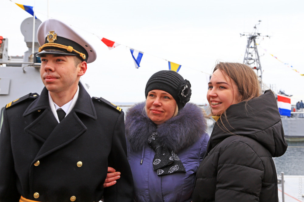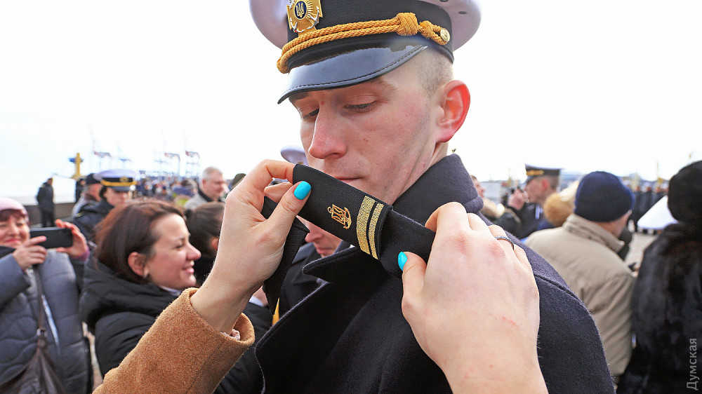 На одесском Морвокзале сегодня было шумно. Более двух сотен родителей и друзей выпускников института Военно-морских сил ждали торжественную церемонию посвящения в лейтенанты. Тем временем к причалам яхт-клуба «Одесса» причалили МБАКи и украинские «Айленды».