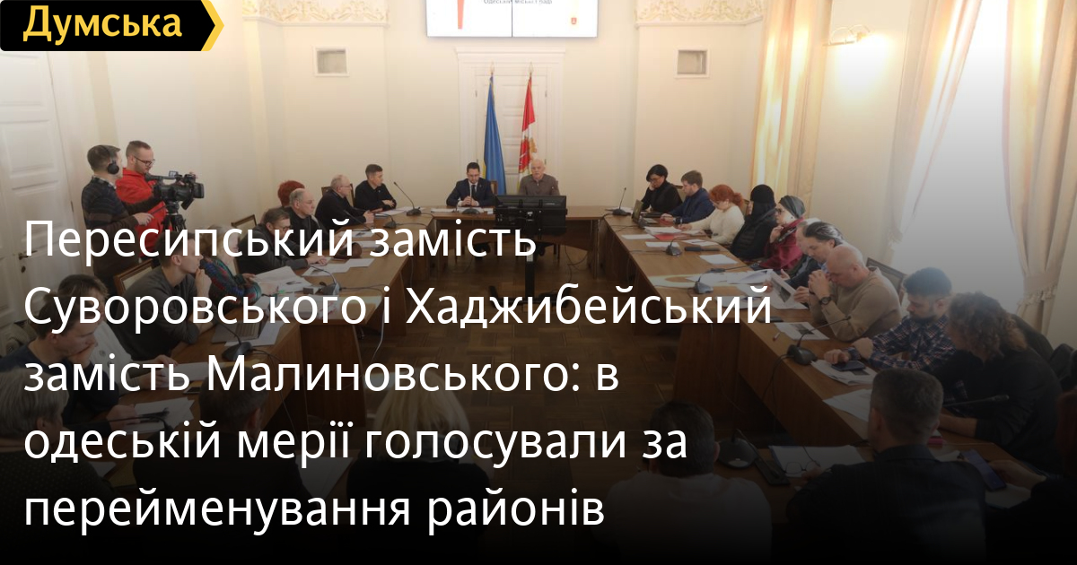 За перейменування Суворовського району на Пересипський, і Малиновського на Хаджибейський проголосували члени історико-топонімічної комісії в одеській мерії.