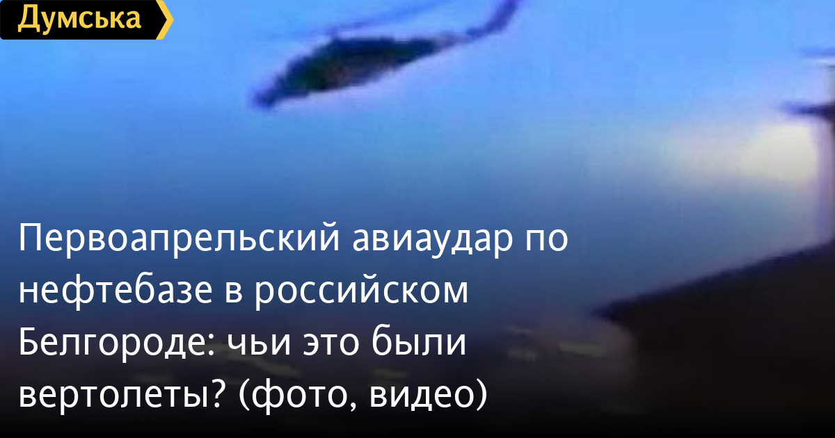Ракетный удар по нефтебазе в российском Белгороде нанесло звено из двух неопознанных вертолетов, которыми управляли асы высочайшей квалификации.