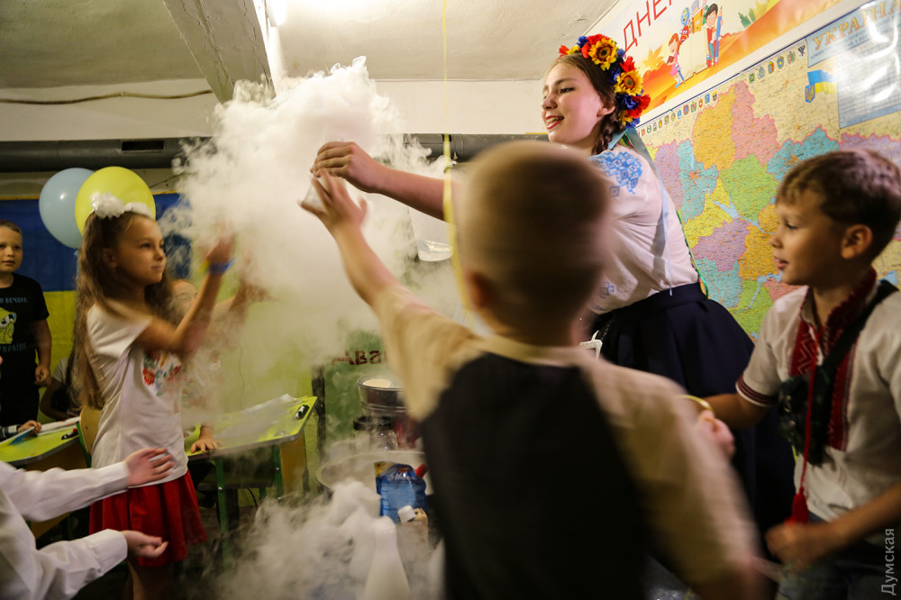 Діти з задоволенням провели час - першим уроком в бомбосховищі став урок хімії, на якому вони дізналися, як діє азот на навколишнє середовище. Разом з волонтерами діти робили хімічні досліди, досліджували вплив речовин та спробували створити справжнє морозиво за допомогою азоту.