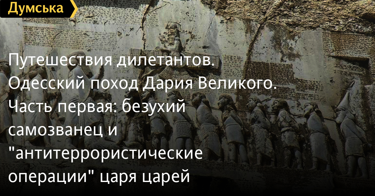 Смог ли я убедить читателей, что один из «катабасисов» (спусков в Аид) находился именно на Жеваховой горе – решать не мне. Зато я могу предложить новое путешествие. На этот раз в компании Дария, сына Гистаспа, царя царей. Третьего преемника Кира II Великого, царя Персии, создавшего из небольшого царства великую державу Ахеменидов. Дарий тоже побывал на одесской земле. Или где-то совсем рядом…