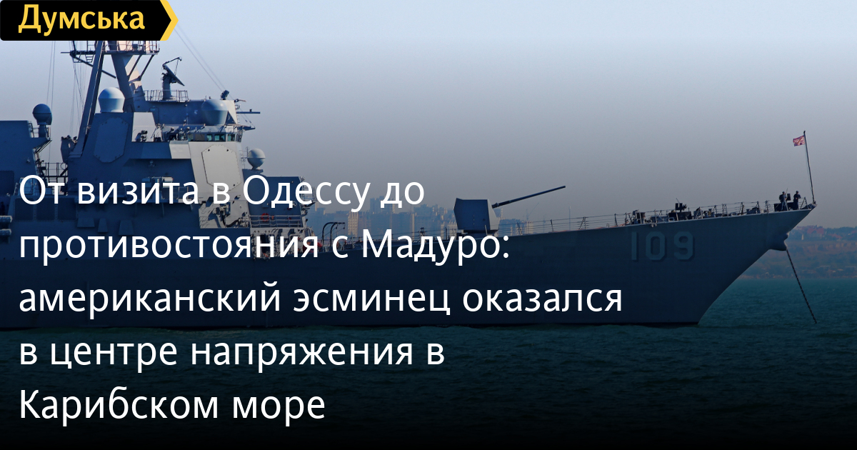 Ситуация у берегов Венесуэлы, куда президент США направил боевые корабли для борьбы с наркотрафиком резко осложнилась — два истребителя F-16 диктатора Мадуро пролетели в открытом океане над американским эсминцем «Джейсон Данхем» (USS Jason Dunham DDG-109) типа «Арли Берк». Пентагон в X подтвердил, что пара венесуэльских самолетов «пролетали рядом с судном ВМС США в международных водах». В министерстве войны США уверены, что этот крайне провокационный шаг был направлен на то, чтобы помешать их операциям по борьбе с наркоторговлей и терроризмом. «Картелю, управляющему Венесуэлой, настоятельно рекомендуется не предпринимать дальнейших попыток воспрепятствовать, сдерживать или вмешиваться в операции по борьбе с наркотиками и терроризмом, проводимые вооружёнными силами США», — отметили в Вашингтоне. Напомним, в середине августа Трамп отдал приказ отправится к берегам Венесуэлы сразу трем американским эсминцам типа «Арли Берк» для борьбы с наркотрафиком из этой страны. Уже 21 августа эсминцы USS Sampson, USS Gridley и USS Jason Dunham отправились в Карибское море. Позже к ним должен был присоединиться десантный вертолетоносец типа «Иводзима», однако, не желая попасть в центр тропического урагана «Эрин», корабль вернулся на базу Норфолк. 2 сентября американские военные заявили, что нанесли удар по судну в Карибском море, которое, по их словам, перевозило наркотики, и заявили, что убили 11 человек на борту. В общем, первый шаг был сделан американцами, поэтому пролет истребителей над эсмнцем был скорее предупреждением со стороны Мадуро, что дальнейшая эскалация не пройдет бесследно. 6 сентября Трамп пригрозил сбивать самолеты F-16 диктатора Мадуро, а на авиабазу в Пуэрто-Рико, что находится в Карибском море в 800 км от побережья Венесуэлы, прибыли американские истребители F-35. В горячую точку также следует подмога из американских кораблей – десантный авианосец «Иводзима» вновь сменил курс на Карибы, вместе с ним в тот же район следует еще пара «десантников» типа «Сан Антонио». Суммарно они могут доставить на побережье не более 4 тысяч морпехов, но проведение такой операции пока под большим вопросом. Эта история интересна тем, что эсминец «Джейсон Данхем» имеет отношение к нашему городу. В 2012 году DDG-109 был одним из новейших эсминцев US Navy. Он строился в новой версии «Арли Берков» — так называемой Flight IIA вариант 5«/62. Главное отличие этой версии от более ранних заключалось в наличии большого ангара, в который вмещалось два многоцелевых вертолета MH-60R Seahawk, с большим полным водоизмещением — до 9300 тонн и увеличенной до 160 метров длиной корпуса, как у эсминцев «Арли Берк» последней, самой продвинутой версии Flight III. Cвой первый большой поход из Атлантики в Средиземное море «Джейсон Данхем» совершил в составе ударной группы авианосца «Дуайт Эйзенхауэр» (USS Dwight D. Eisenhower CVN 69). В начале июля 2012 года он на две недели оставил сопровождение авианосца в Средиземном море для участия в международных учениях «СиБриз – 2012». Эсминец прибыл в Одесский залив 7 июля, однако в порт не заходил, бросив якорь на внешнем рейде. Кстати, в те дни рядом с ним стоял наш БДК (большой десантный корабль) «Константин Ольшанский», который весной 2014 года был захвачен оккупантами в Севастополе. Журналисты «Думской» побывали на борту эсминца.13 лет назад это был новый корабль, а в некоторых внутренних помещени