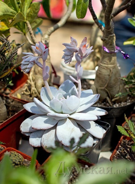 Самые дорогие нынешней весной — африканские кактусы: на континенте сложная политическая обстановка, поэтому оттуда практически перестали везти дикие растения. Вот одна из африканок — похожая на небольшую пальму дикая глаксиния. Она может не поливаться до пяти месяцев. Ну и конечно, всегда в цене цветущие кактусы.