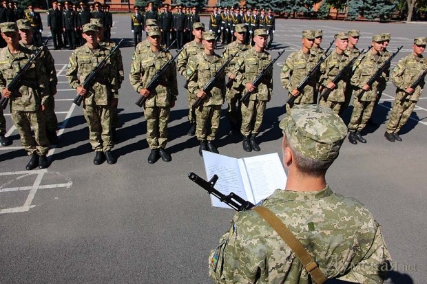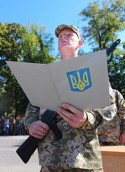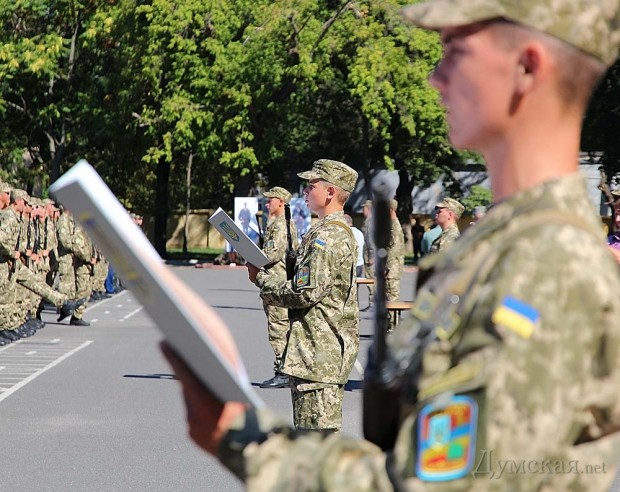 Сегодня 250 курсантов первого курса одесской Военной академии, в том числе двадцать ветеранов антитеррористической операции, приняли присягу на верность украинскому народу.