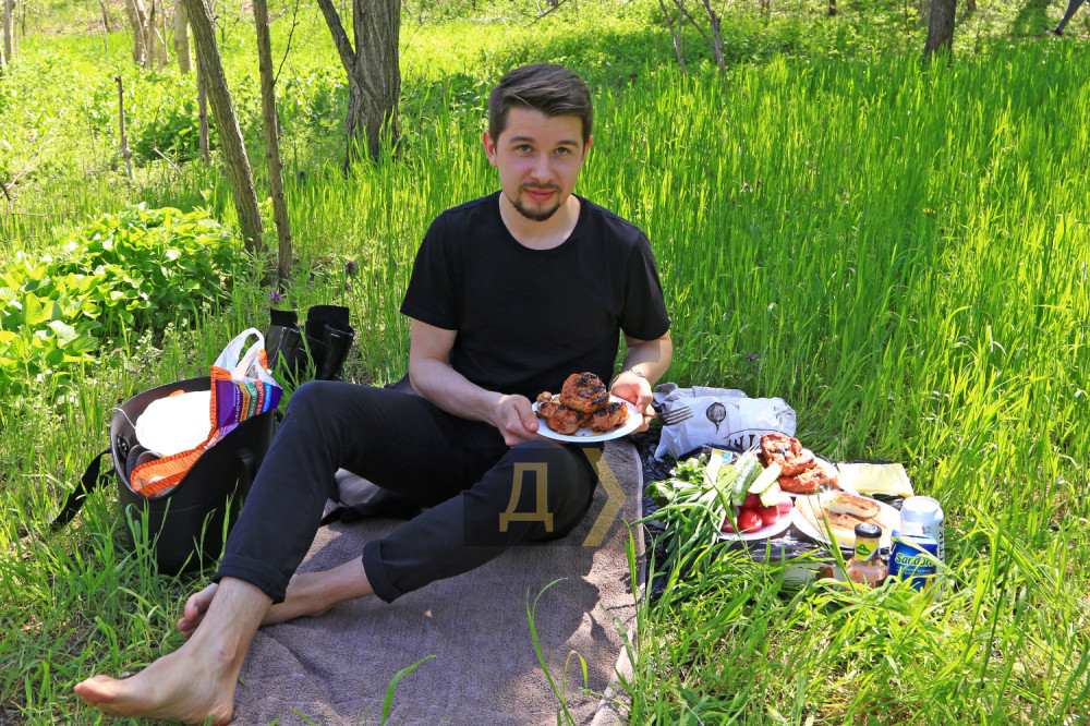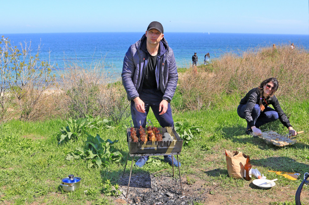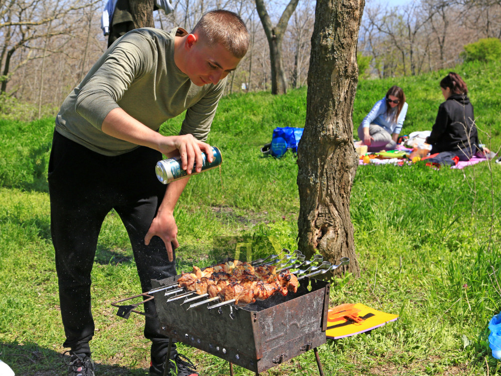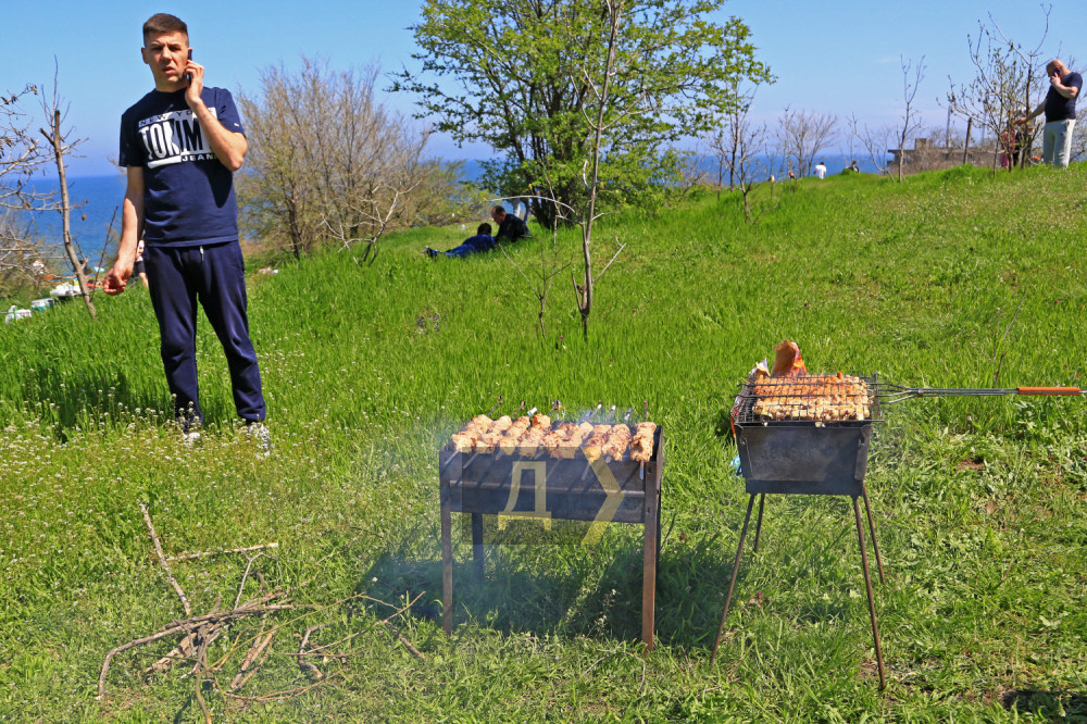 Тысячи жителей нашего города вышли на склоны к морю. Люди отдыхают по-разному, но большинство предается традиционному первомайскому занятию — жарке шашлыка.