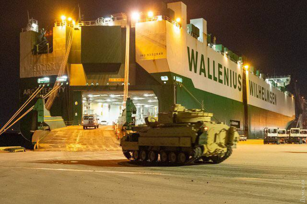 Понад 60 бойових броньованих машин Bradley завантажили на судно в порту Північного Чарльстона (штат Південна Кароліна) і відправили в західну Європу, звідки вони прибудуть в Україну.