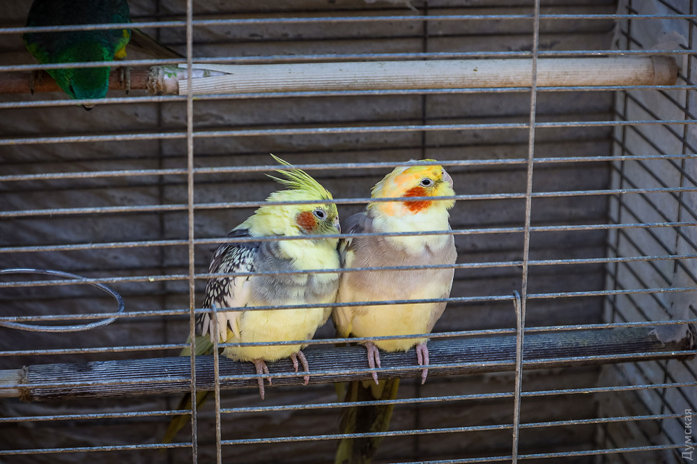 Открыли свои павильоны и продавцы всевозможных грызунов и попугайчиков. Пока женщина выбирает корм для пернатого питомца, ее сын возле огромной витрины, заставленной клетками, пытается уговорить бабушку на новую покупку — парочку желтых попугайчиков. Бабушка не сдается.